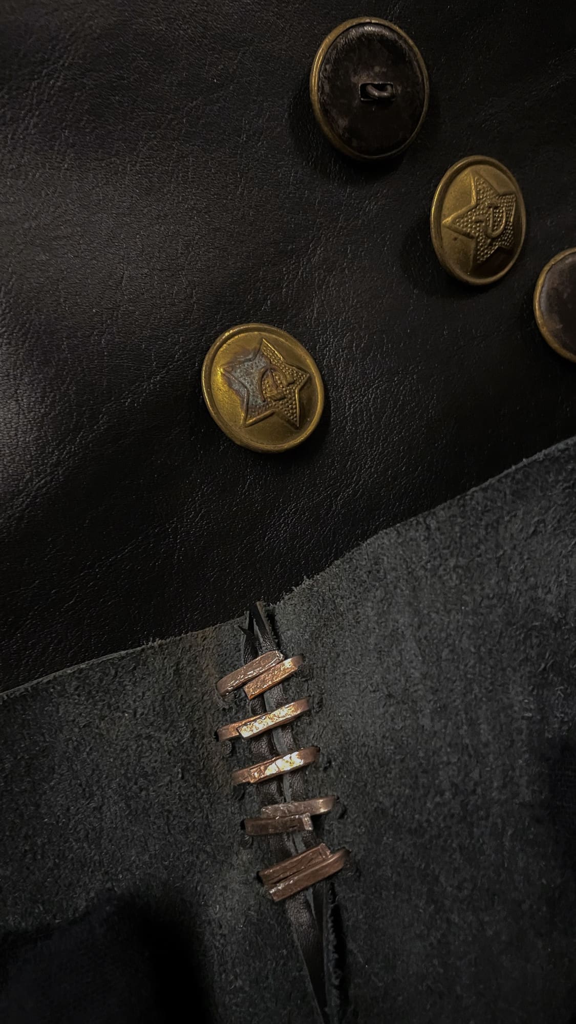 Les boutons eux sont soigneusement chineés et cousus avec minutie. Pour cette veste, j’ai utilisé des boutons d’uniforme militaire de l’URSS.