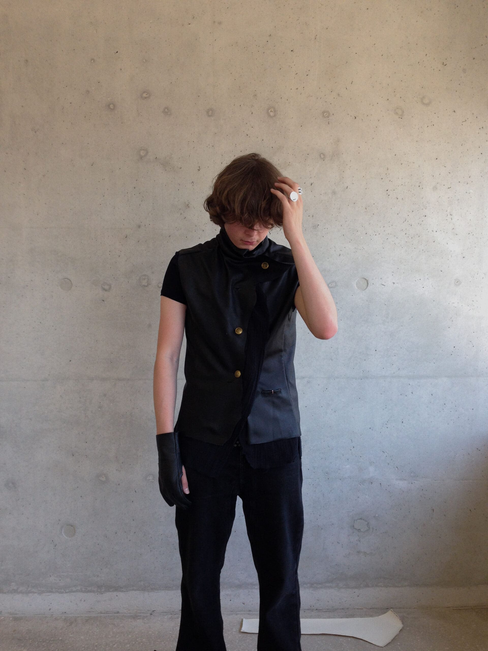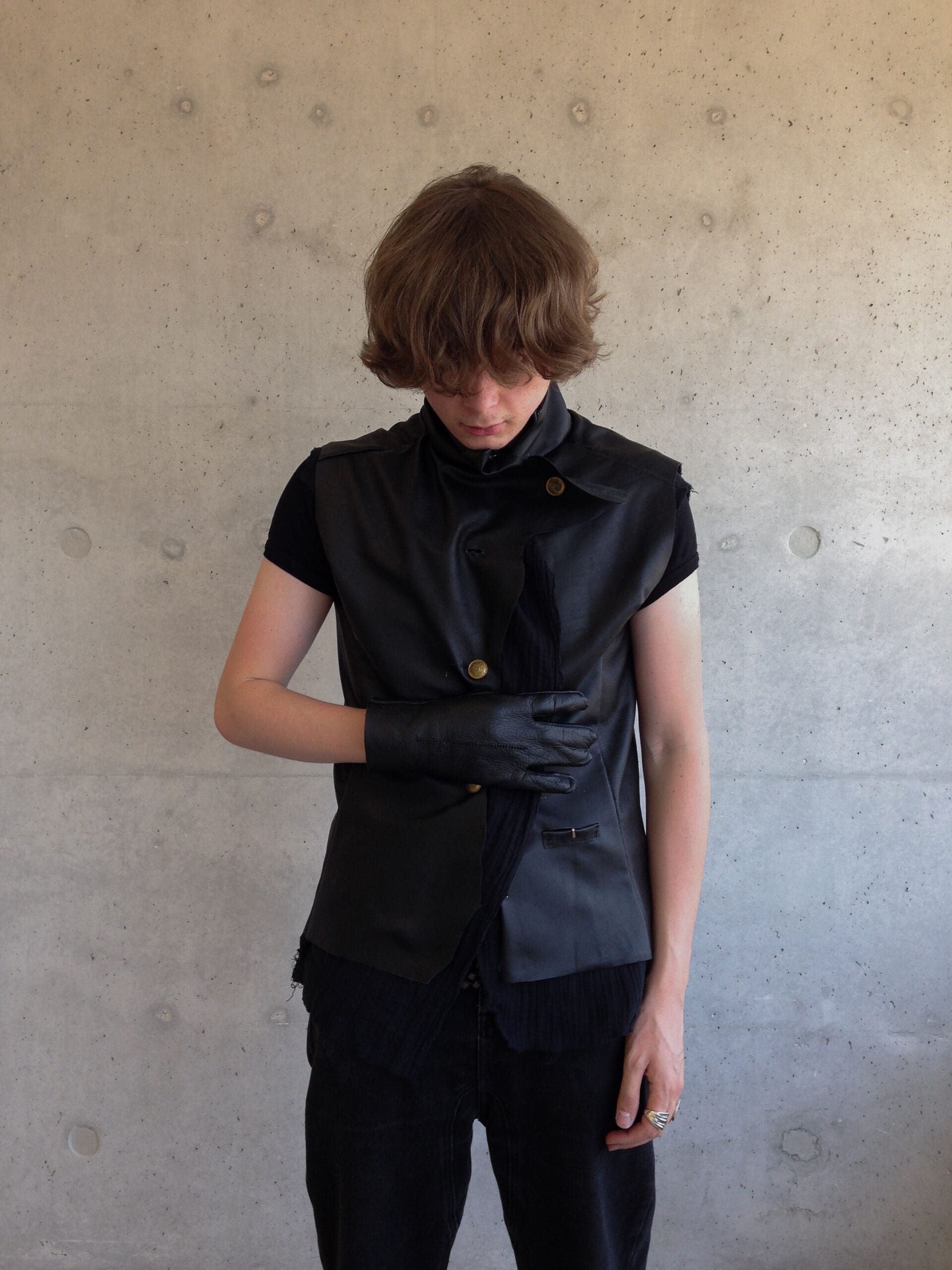 Veste et gant en cuir et lin faite à la main par LEGORGEU Y (@legorgeu.y)