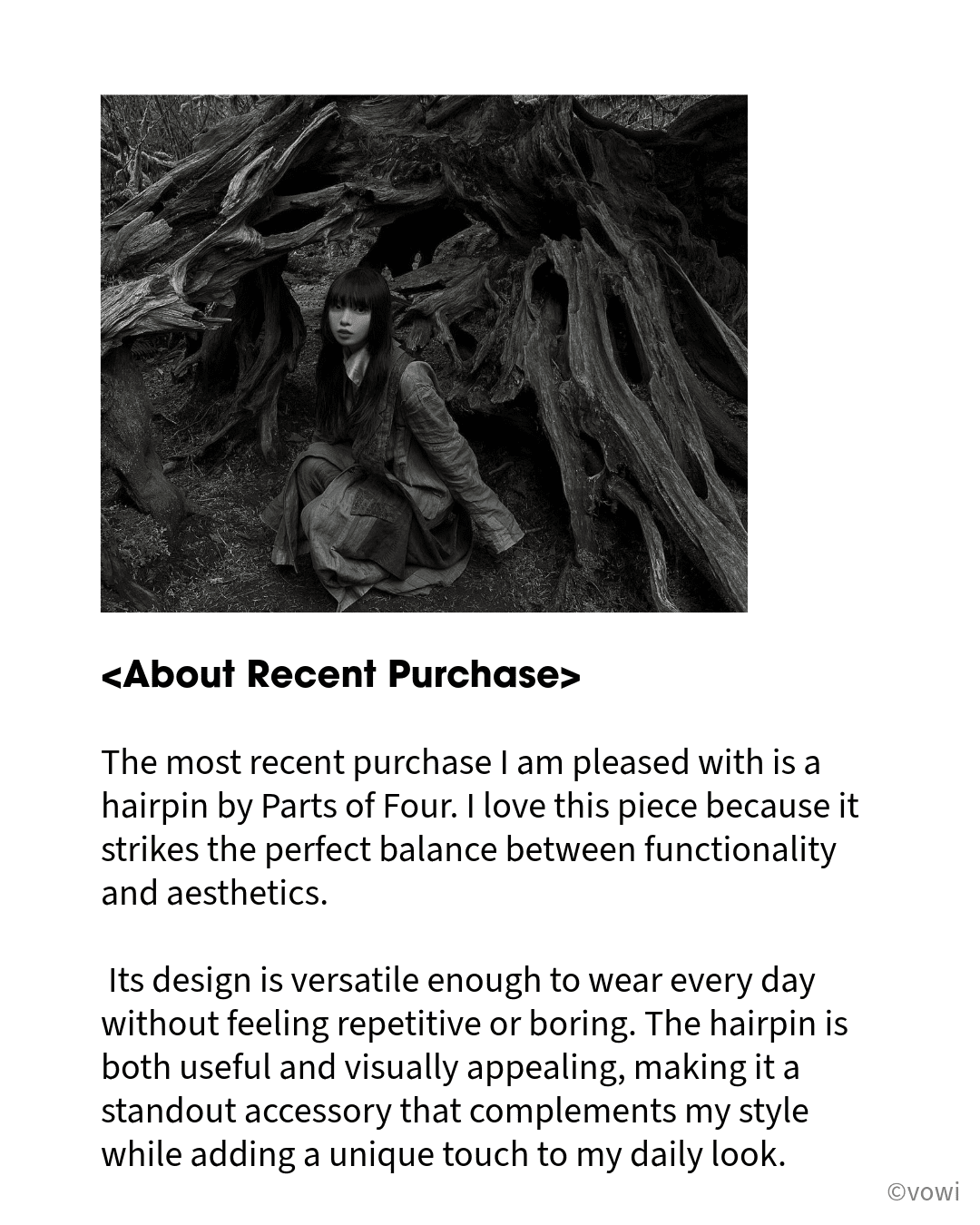 The most recent purchase I am pleased with is a hairpin by Parts of Four. I love this piece because it strikes the perfect balance between functionality and aesthetics.
