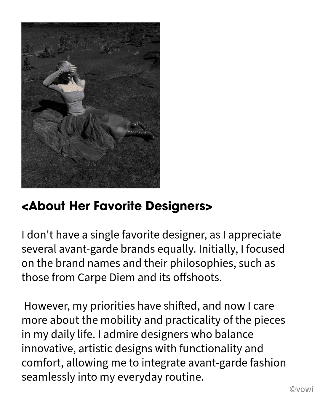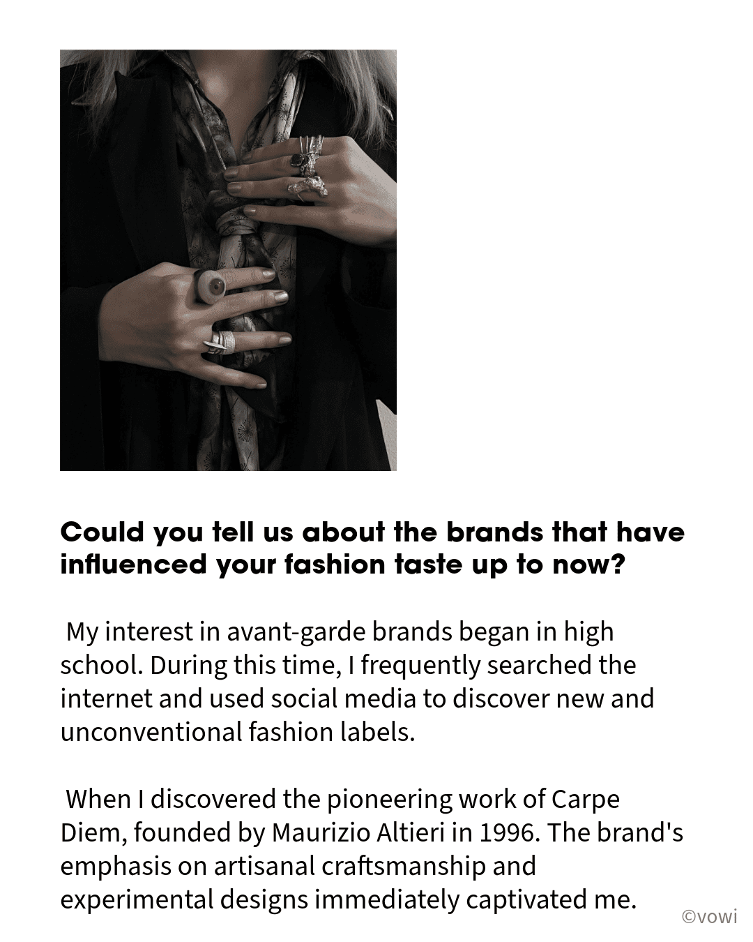 My interest in avant-garde brands began in high school. During this time, I frequently searched the internet and used social media to discover new and unconventional fashion labels.