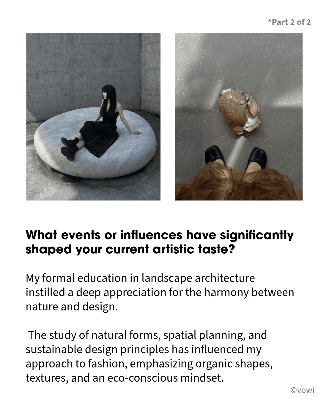 My formal education in landscape architecture instilled a deep appreciation for the harmony between nature and design. The study of natural forms, spatial planning, and sustainable design principles has influenced my approach to fashion, emphasizing organic shapes, textures, and an eco-conscious mindset.
