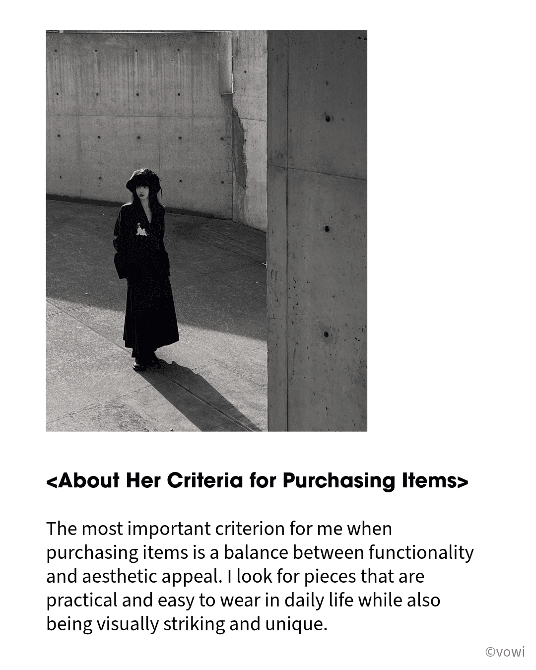 The most important criterion for me when purchasing items is a balance between functionality and aesthetic appeal. I look for pieces that are practical and easy to wear in daily life while also being visually striking and unique.