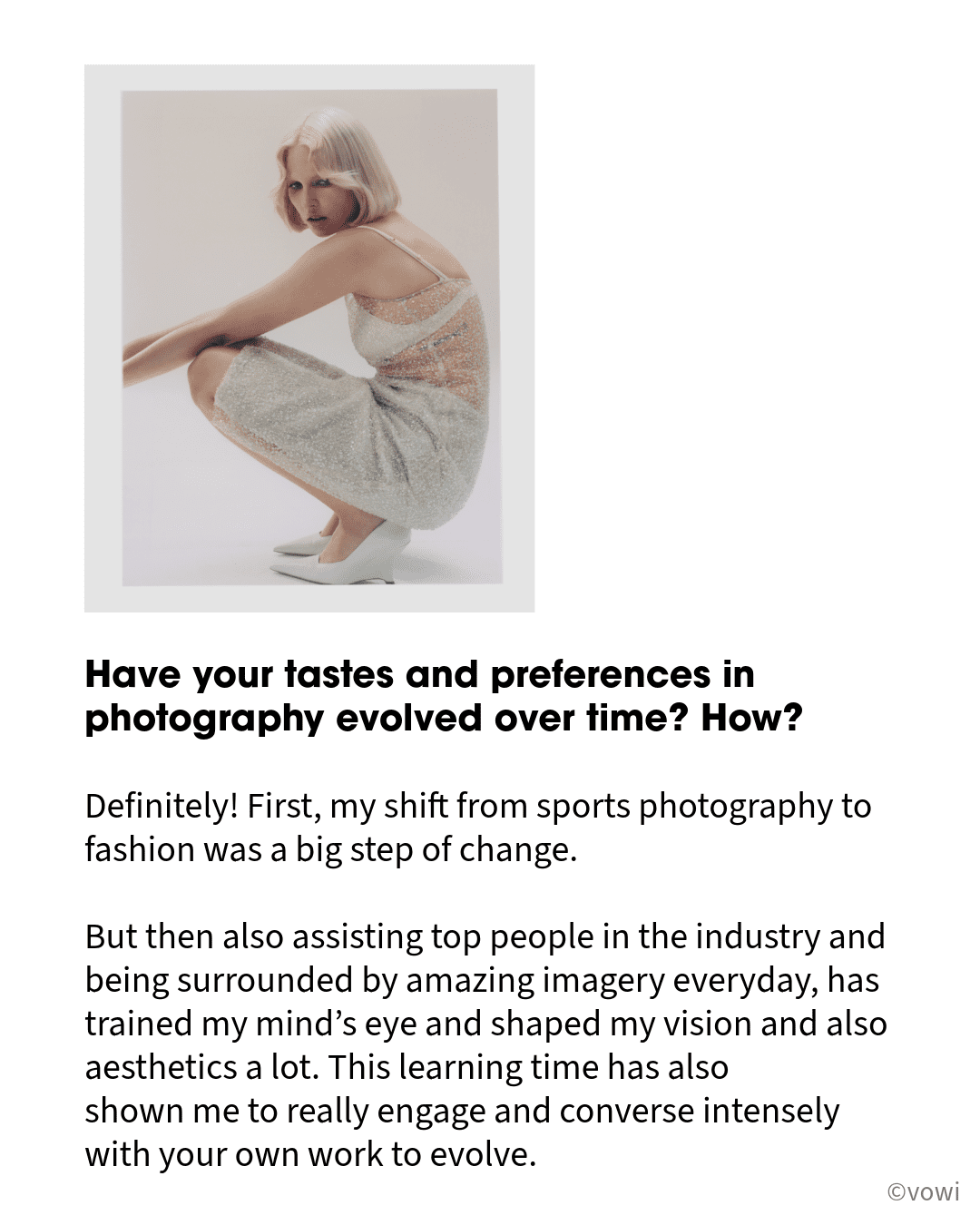 Definitely! First, my shift from sports photography to fashion was a big step of change. But then also assisting top people in the industry and being surrounded by amazing imagery everyday, has trained my mind’s eye and shaped my vision and also aesthetics a lot. This learning time has also shown me to really engage and converse