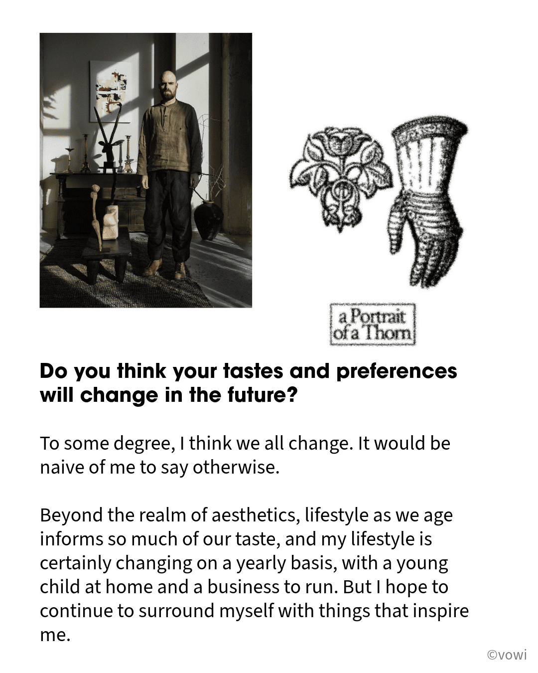 To some degree, I think we all change. It would be naive of me to say otherwise. Beyond the realm of aesthetics, lifestyle as we age informs so much of our taste, and my lifestyle is certainly changing on a yearly basis, with a young child at home and a business to run. But I hope to continue to surround myself with things that inspire me.