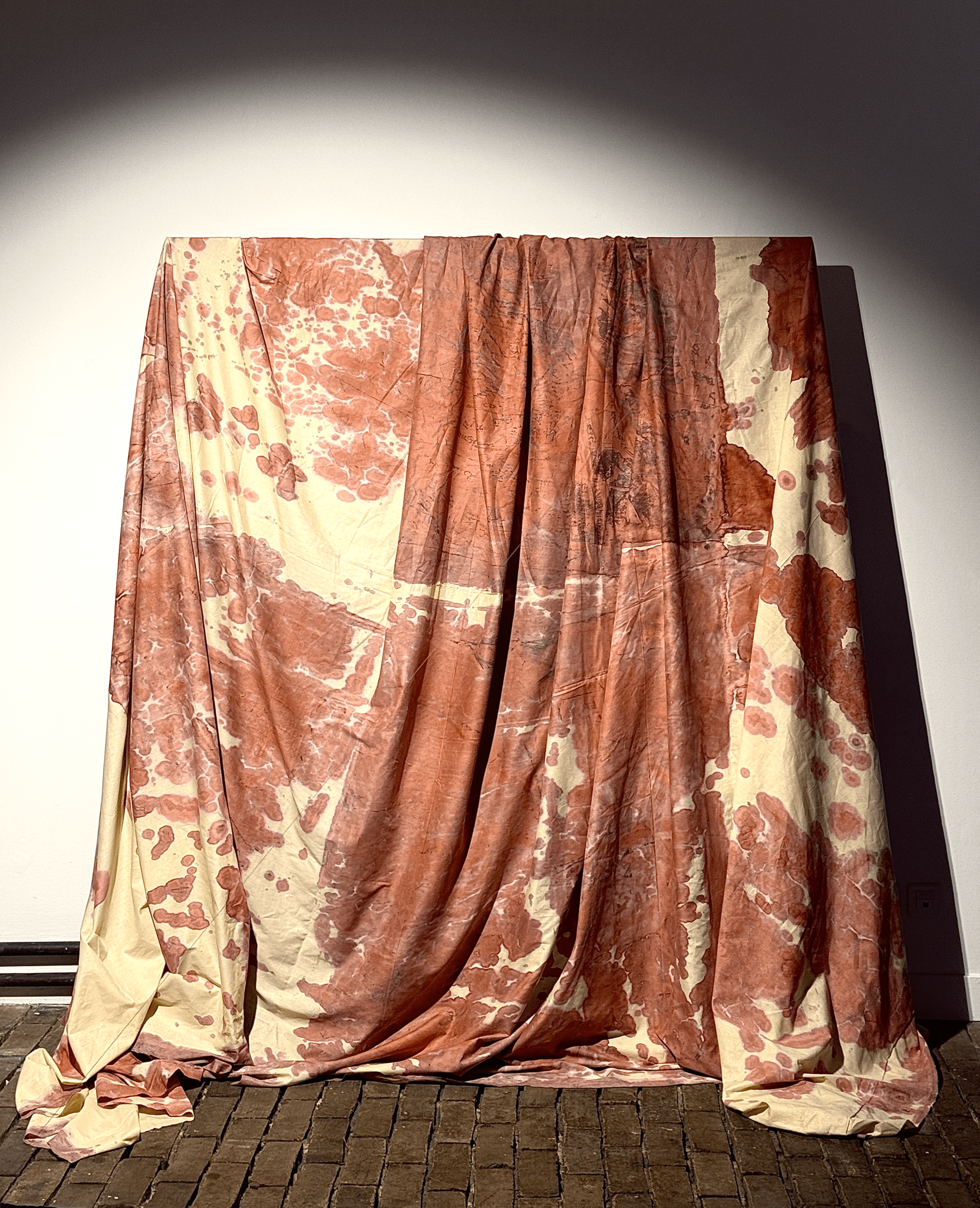 Draped organic bedsheet textile on a stretcher