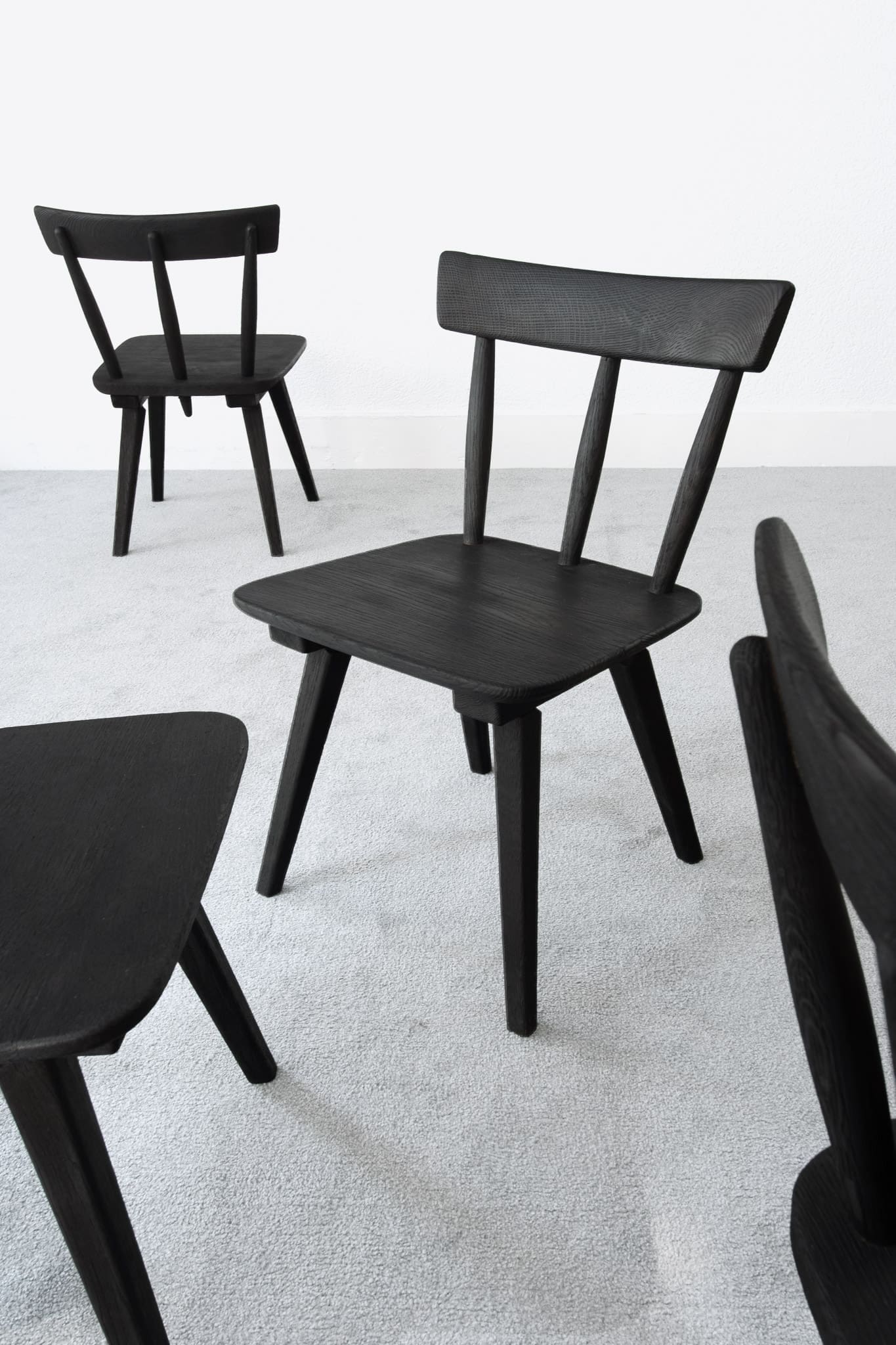 Rare set of four chairs and matching table, blackened solid oak, att. to Jacob Müller for Wohnhilfe, Switzerland 1940s-50s.