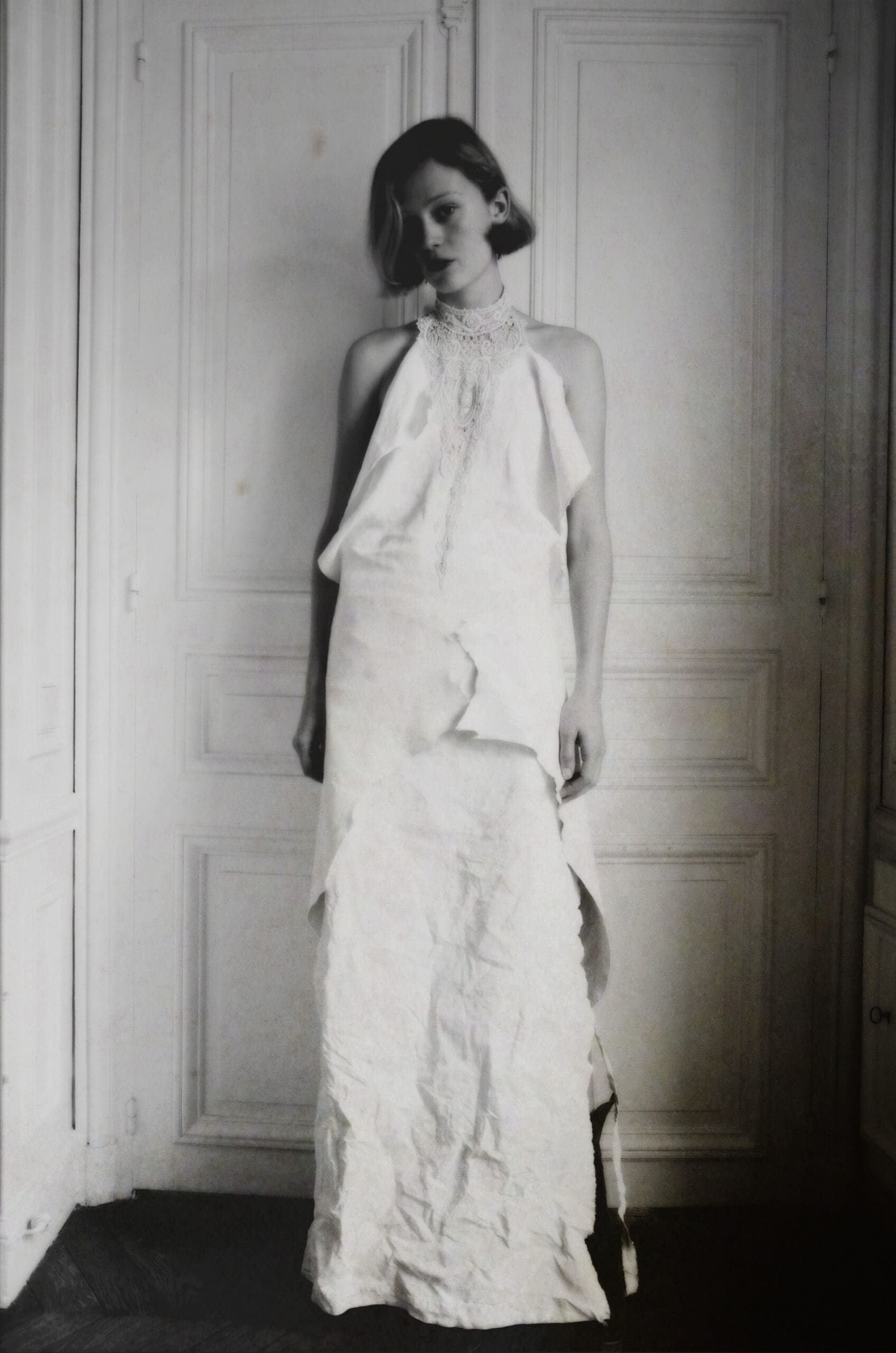 in her dress.