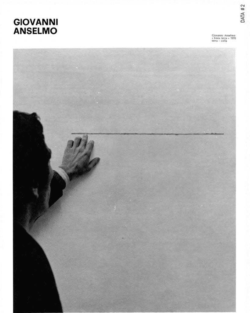 Anselmo emerged as one of the protagonists of Arte Povera, the movement named by curator Germano Celant in 1967 to describe art made with “poor” (ordinary or elemental) materials in opposition to the consumerist and industrial ethos of the time