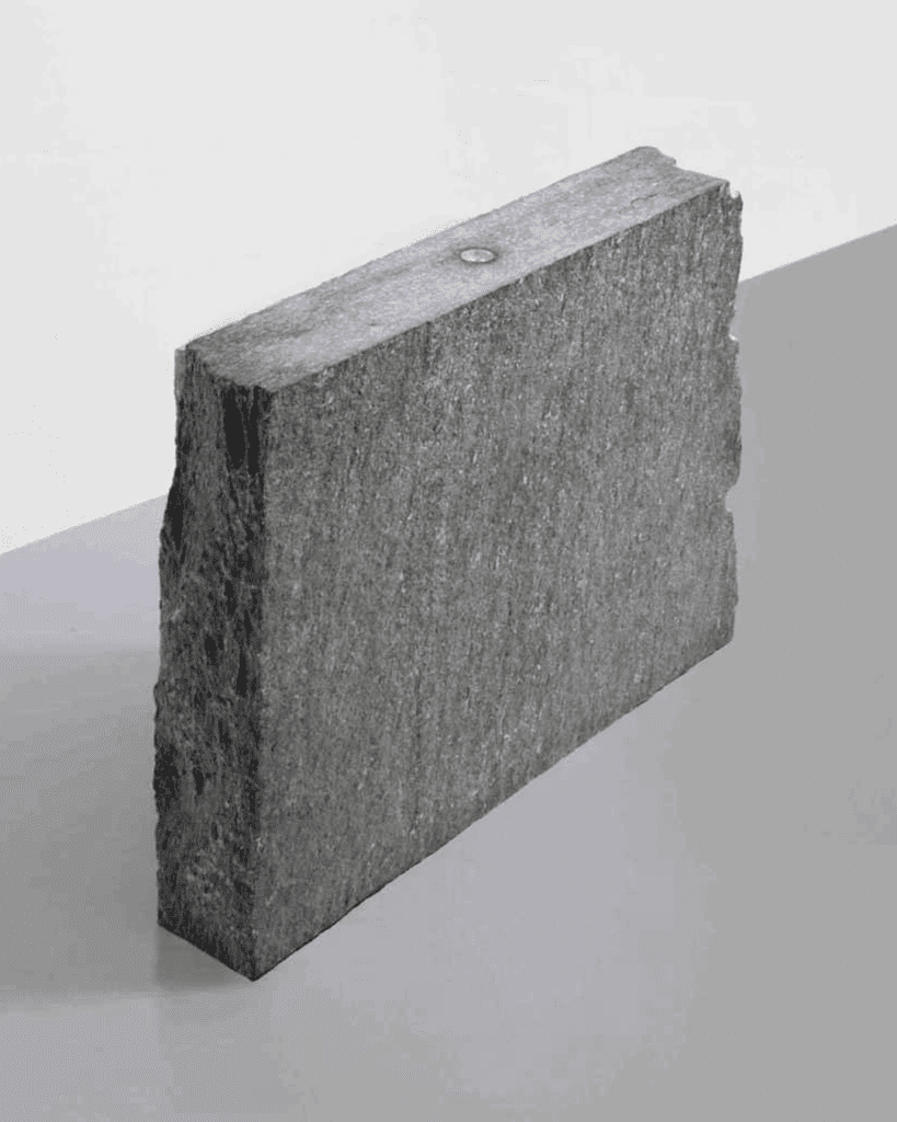 Untitled (Eating Structure), 1968 – Also known as “Sculpture That Eats” (in Italian Struttura che mangia), this iconic piece epitomizes Anselmo’s approach of incorporating organic processes into sculpture. It consists of two blocks of granite, one balanced atop the other, with a head of fresh lettuce wedged between them and held by a copper or nylon wire