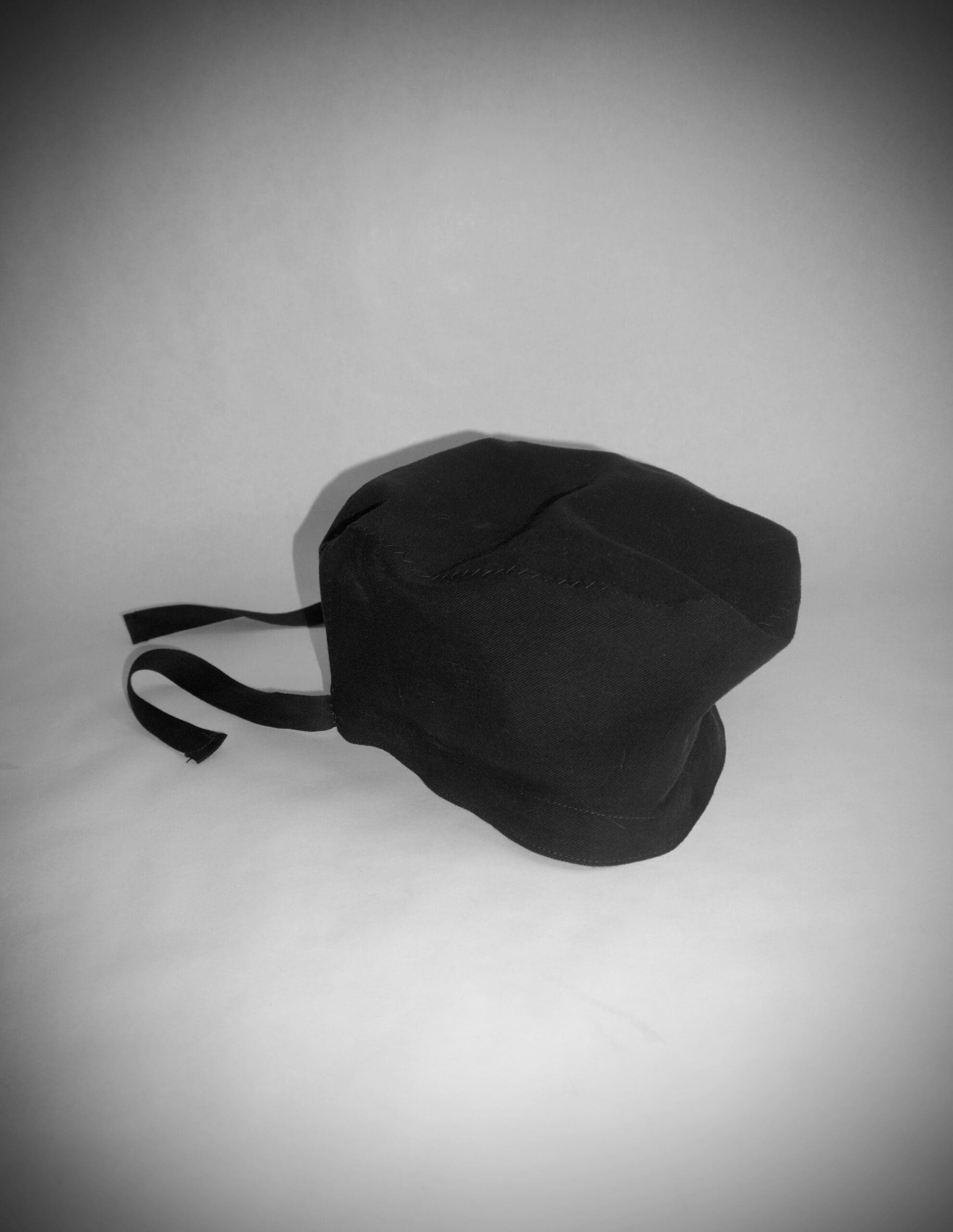 Inspired by Soviet surgical caps, it refuses the sterile logic of protection or restoration.