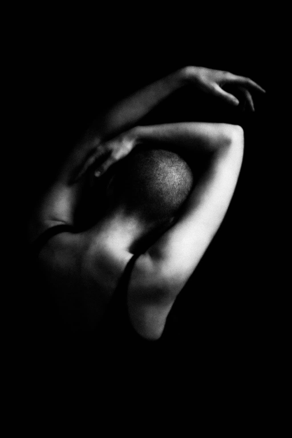 This image explores a moment of withdrawal and self-protection, where the body becomes both refuge and inner landscape. The enveloping, almost circular gesture suggests a return inward — a search for safety within one’s own flesh.