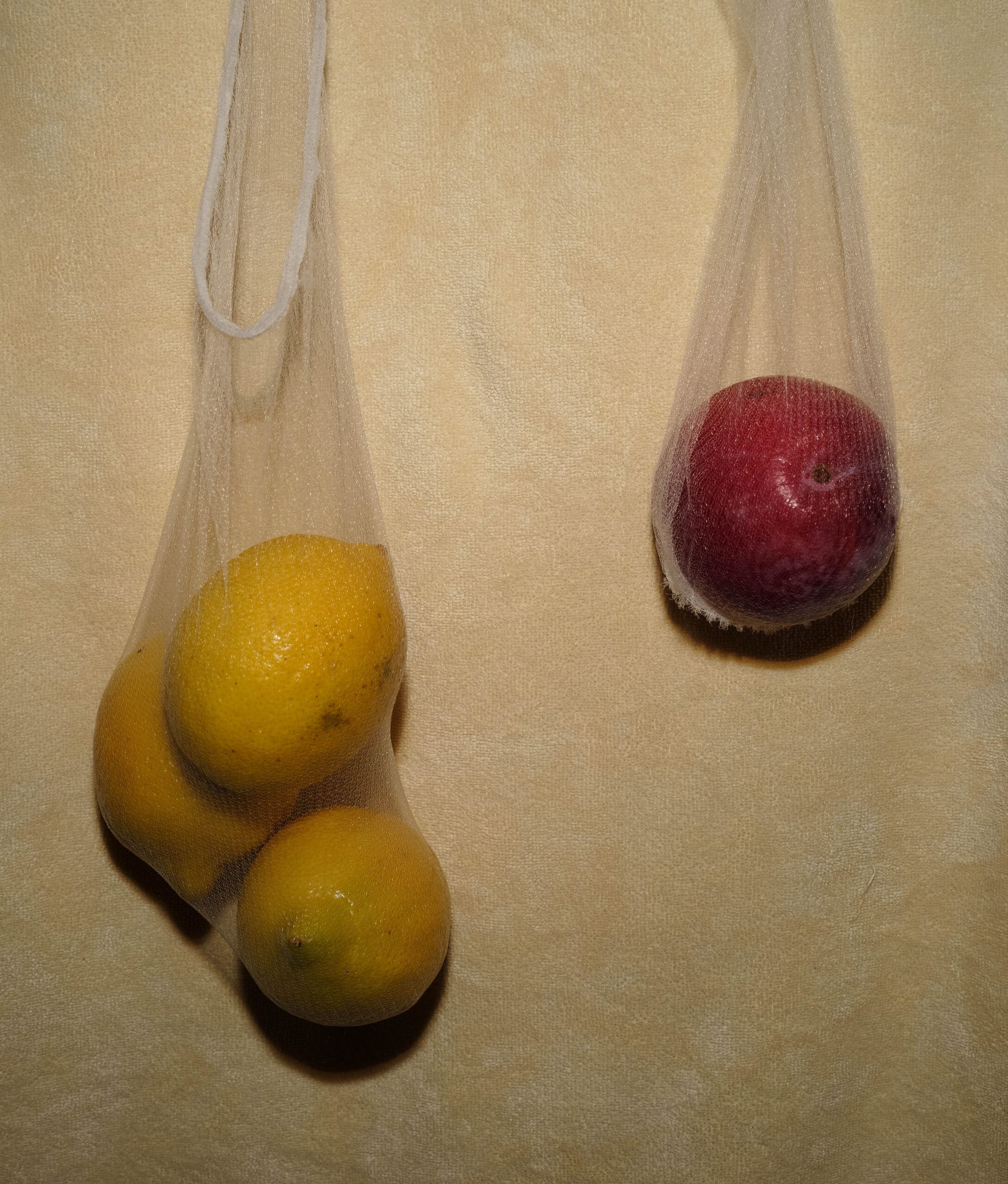 In this project, the fusion of common objects with the body reflects the reconstruction and deconstruction of this intimate space. The skins of fruits and vegetables symbolize nature’s protective qualities while hinting at the fragility and transience of life. The mesh installations dance between protection and restriction, outlining a delicate boundary that illustrates the constraints faced when pursuing a sense of security.