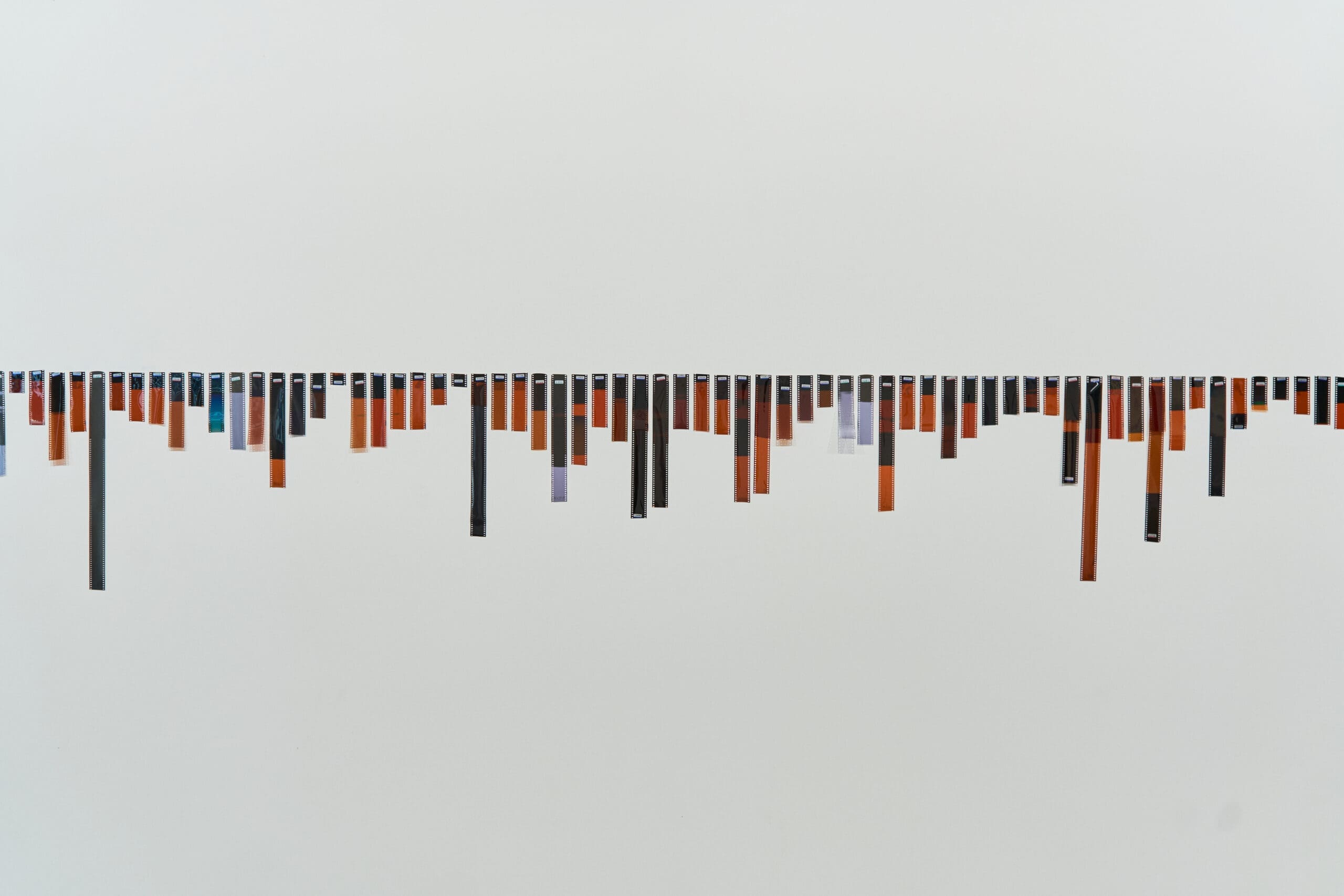 Empty frames sometimes appear in a film roll due to the film being unusable, the camera being used incorrectly, or even due to simply fixing the film in the camera under normal conditions. This can be considered a kind of starting point for capturing new stories. The series of artifacts “what is more important” is a collection of ≈1500 “tails” from 35 mm film and empty/expired films; each element of the collection has its own (non-unique) number – a twin-check, assigned to it in the photo lab. Each element is unique: by its length, inclusions, scratches and condition.